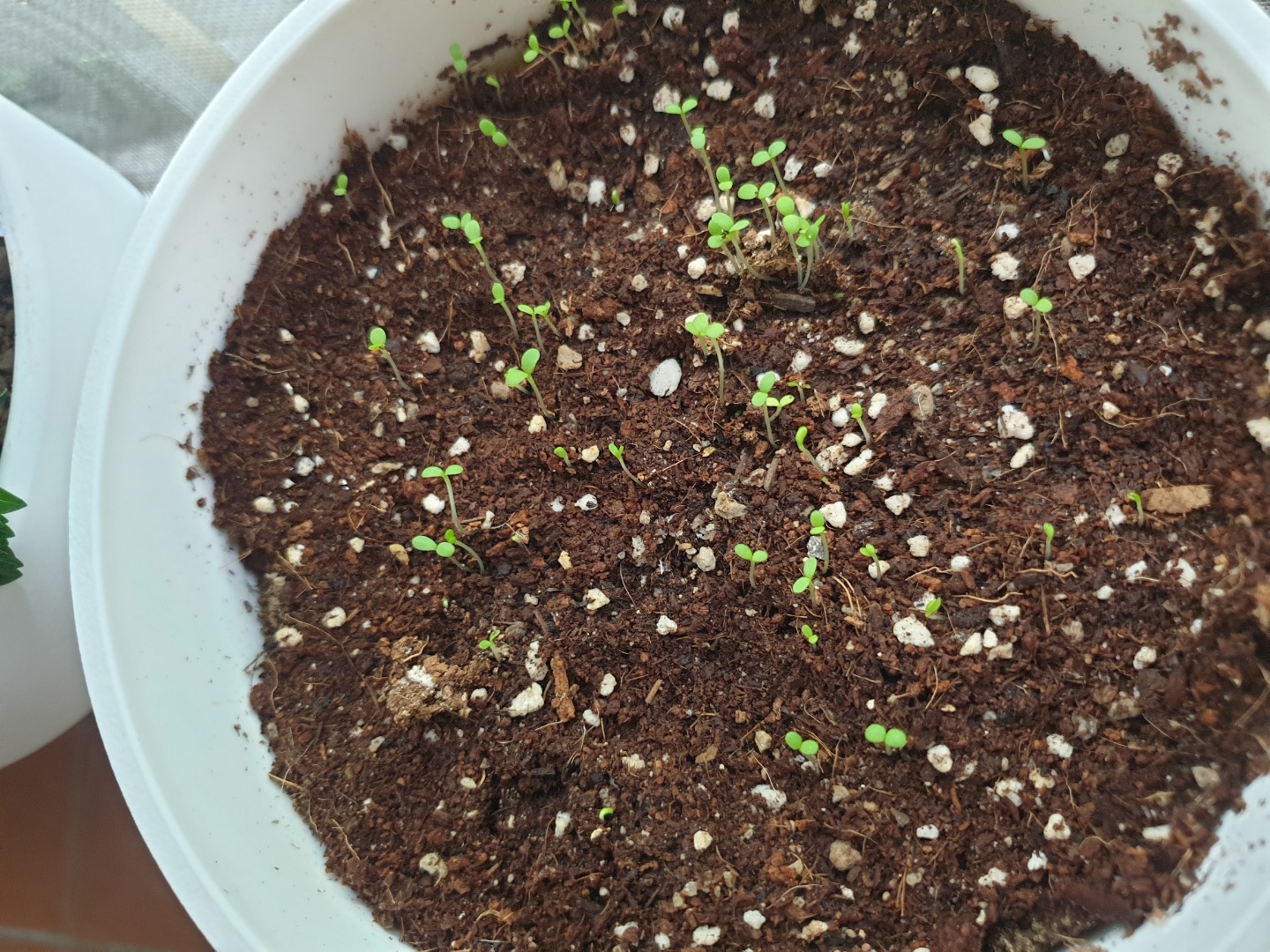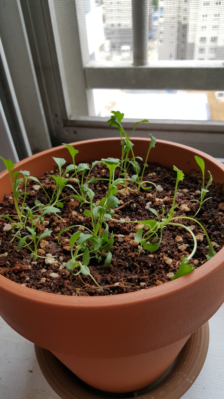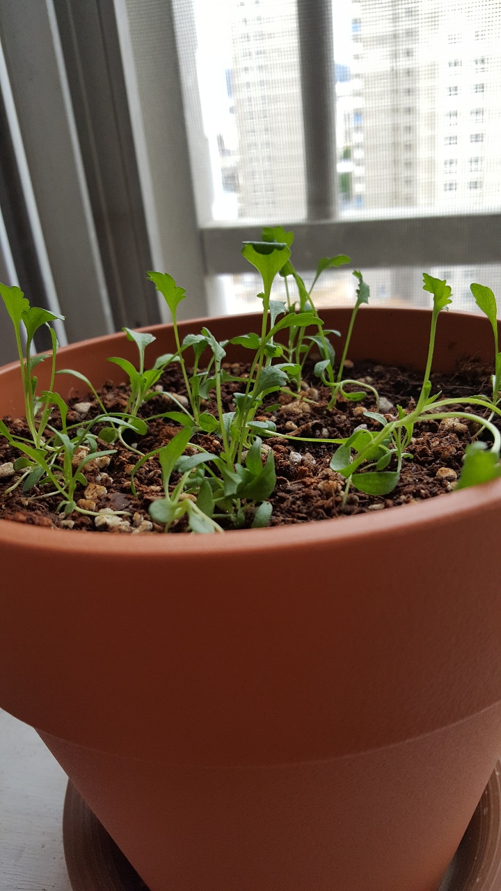 샤스타 데이지를 씨앗으로 심고 10일 정도 지난 정도의 모습입니다.