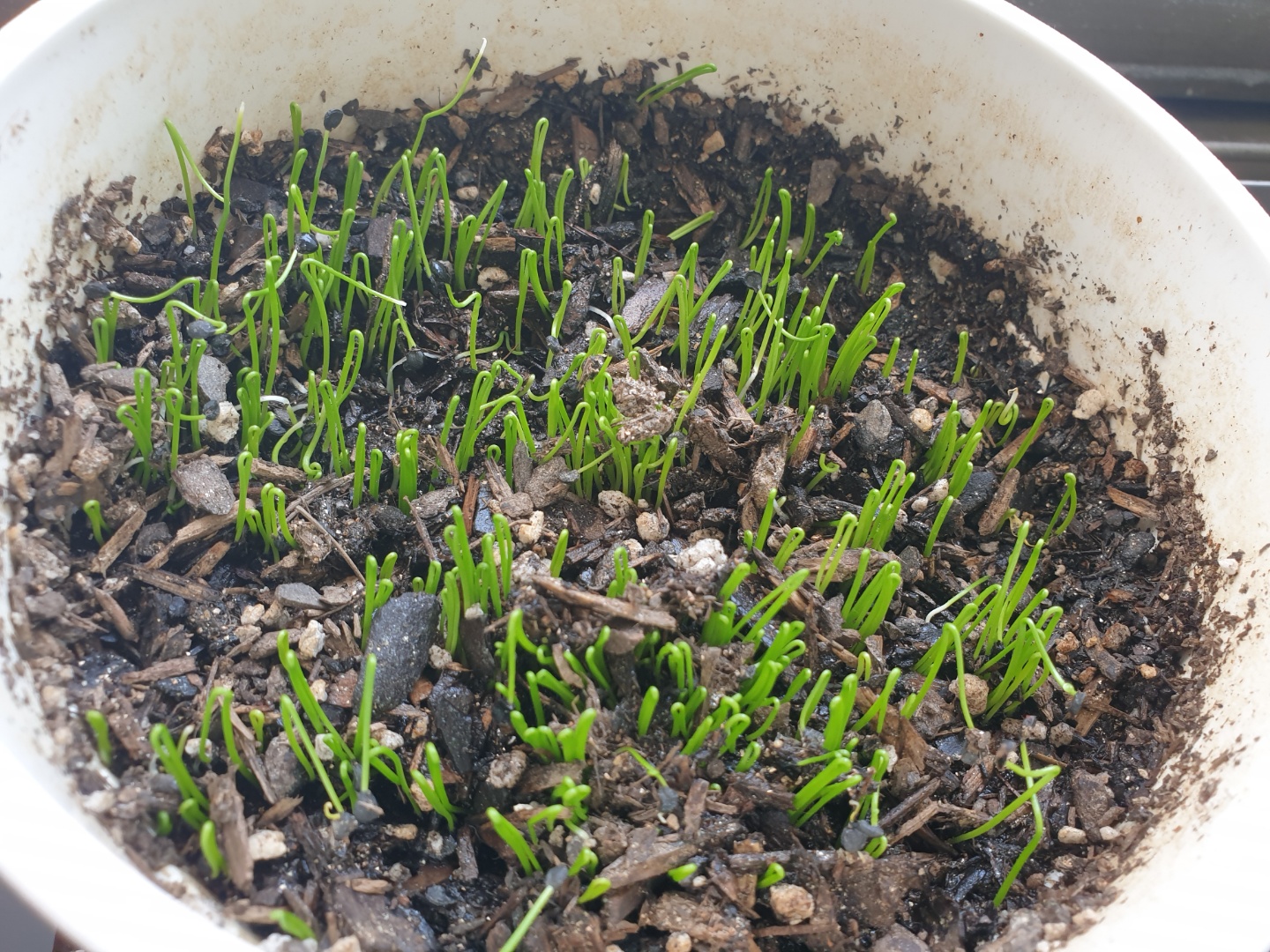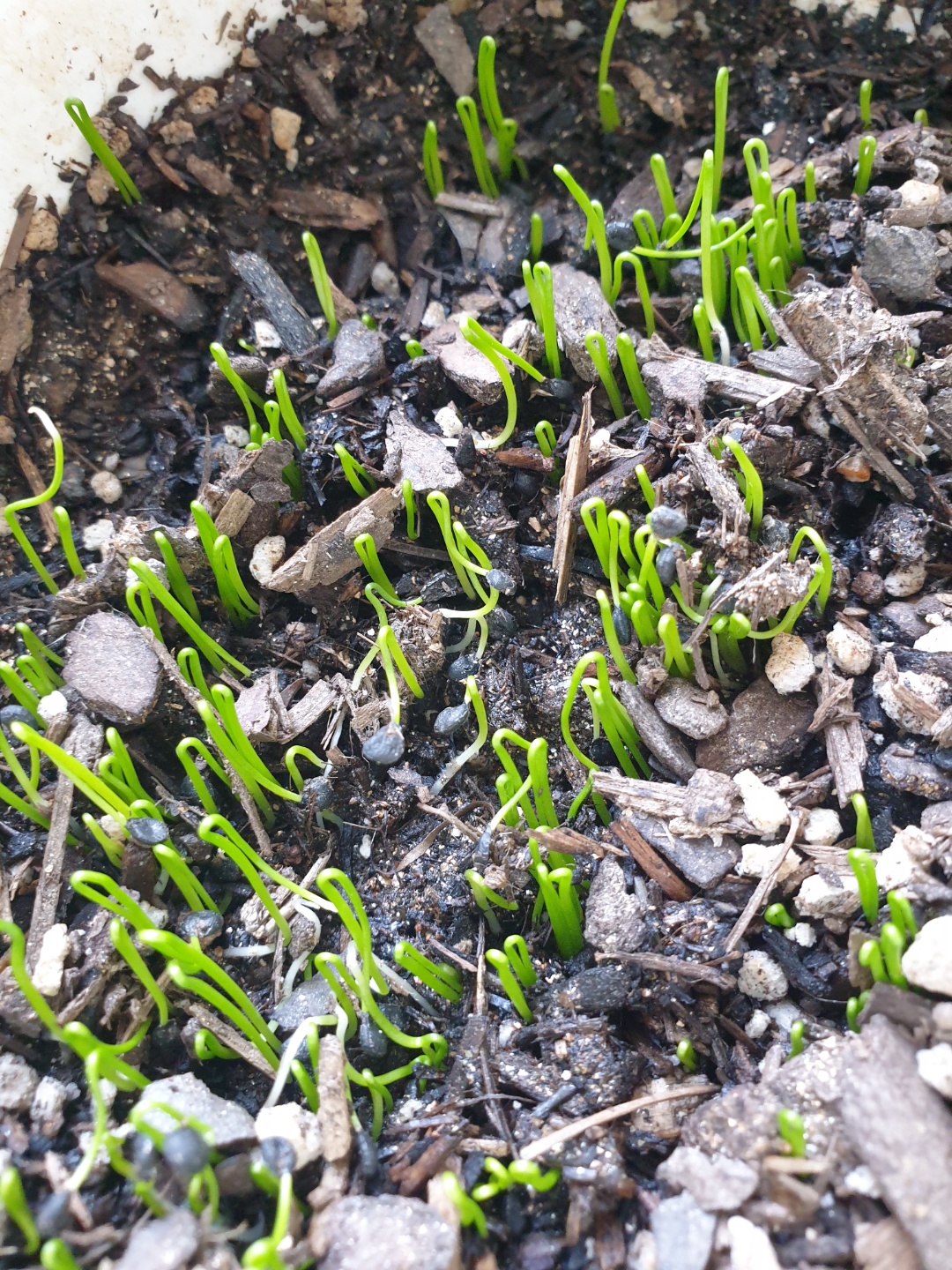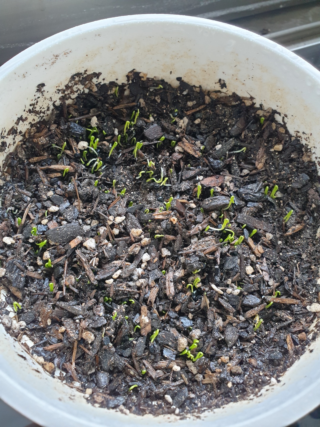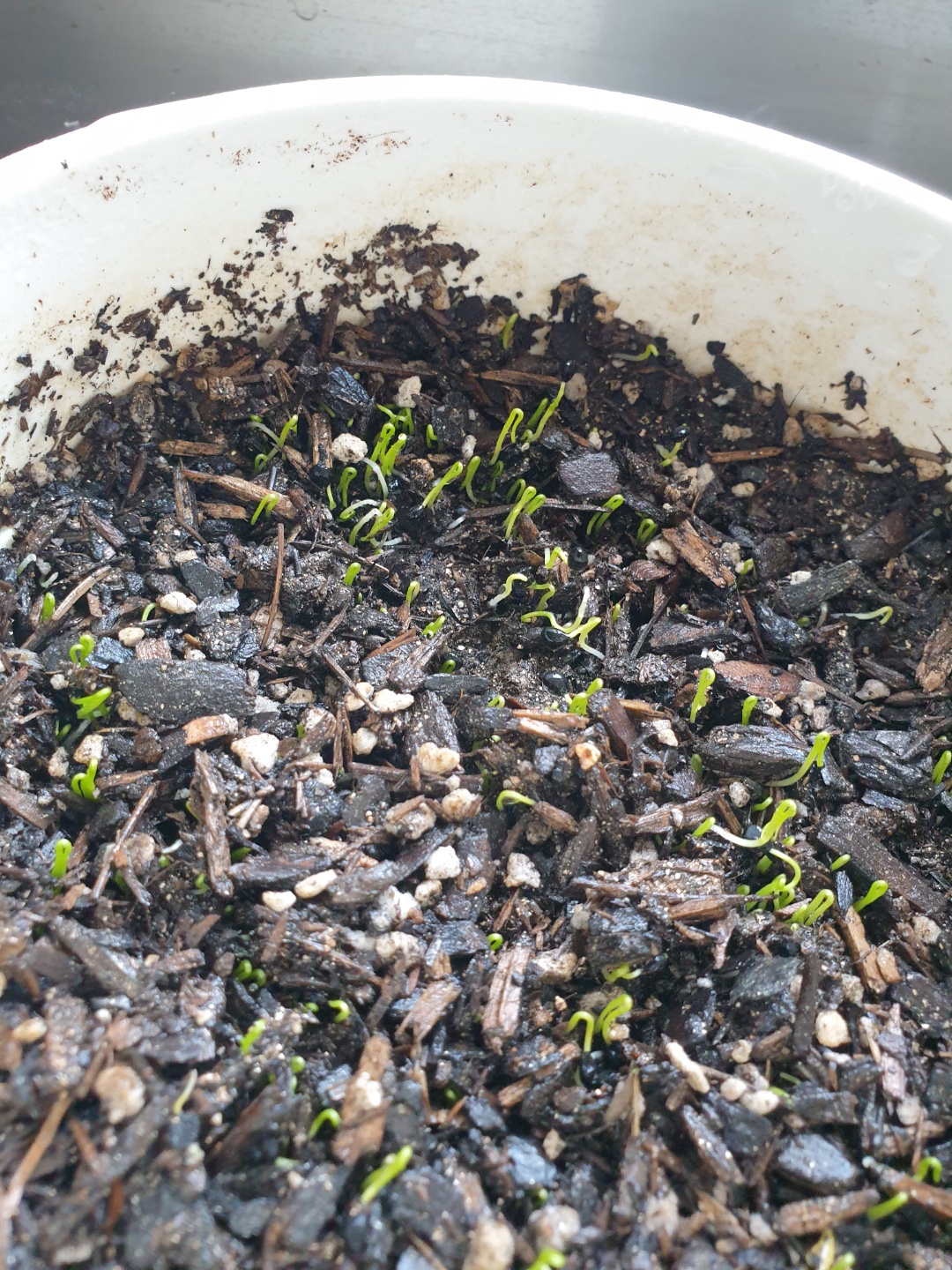싹이 많이 올라와서 까만 껍질 부분이 보이는 싹도 보입니다.