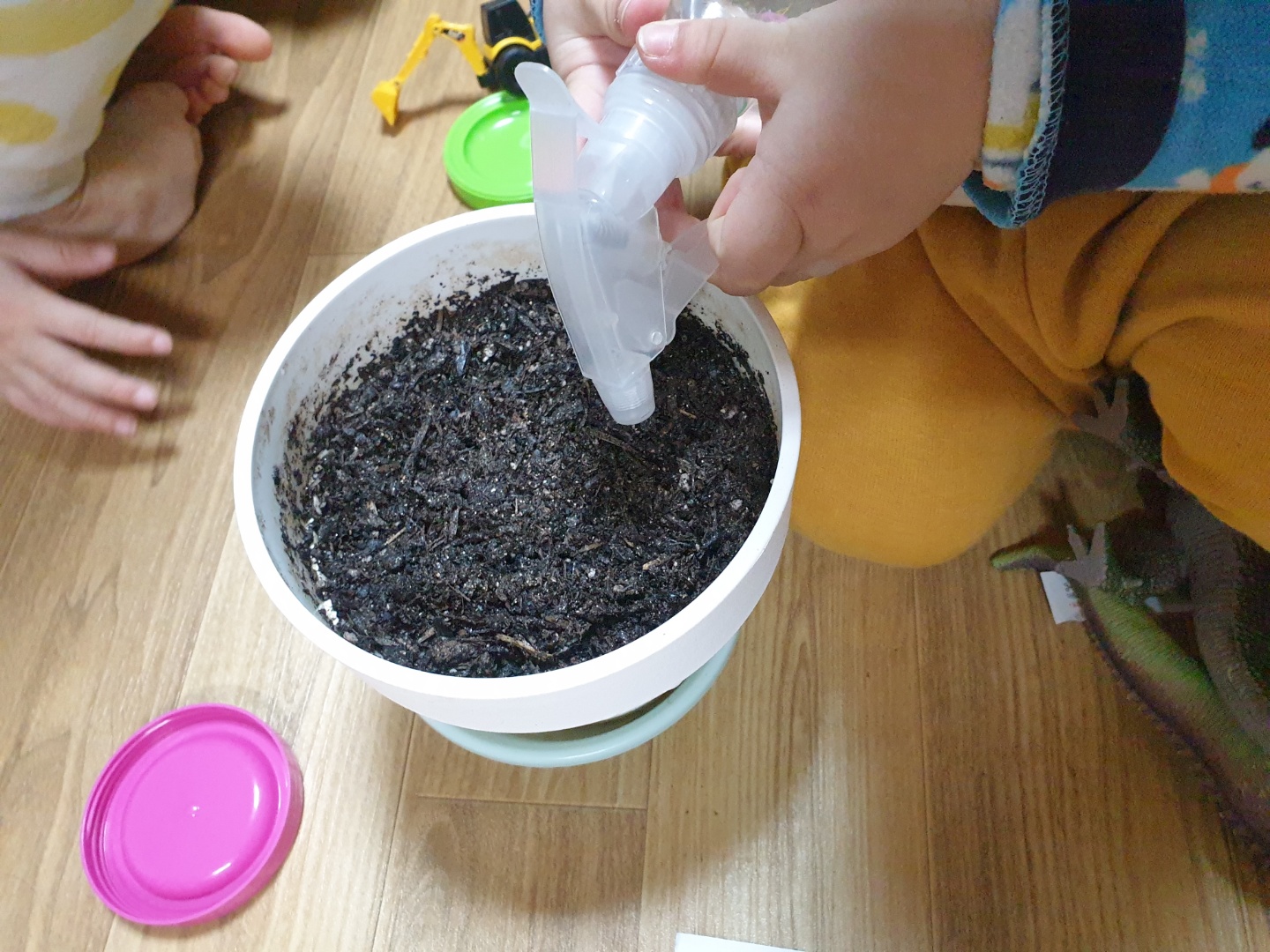 4살, 7살 아이들과 함께 부추씨 심어줬습니다. 같이 하는 것에 의미가 있죠..🙂ㅎㅎㅎㅎ 부추가 물만 주면 잘 자란다기에 물이라도 많이 줘라 ~ 했죠