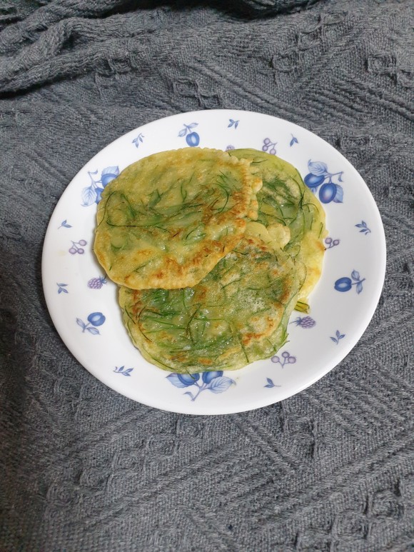 가늘고 연하긴 하지만 부추전 맛이 나고
