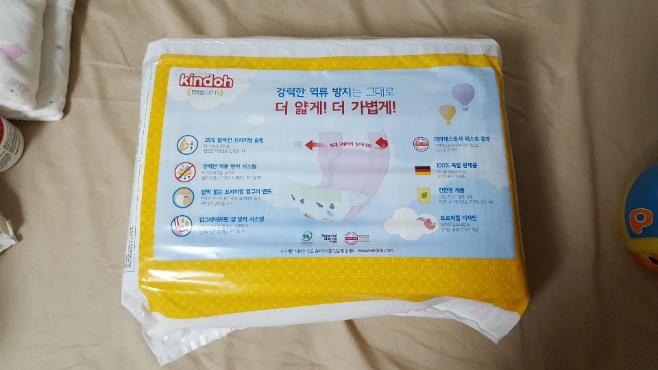 신생아 시기에는 자주 기저귀를 갈아주기때문에 킨도 프리미엄 슬림을 쓰기에 좋았던 것같습니다.