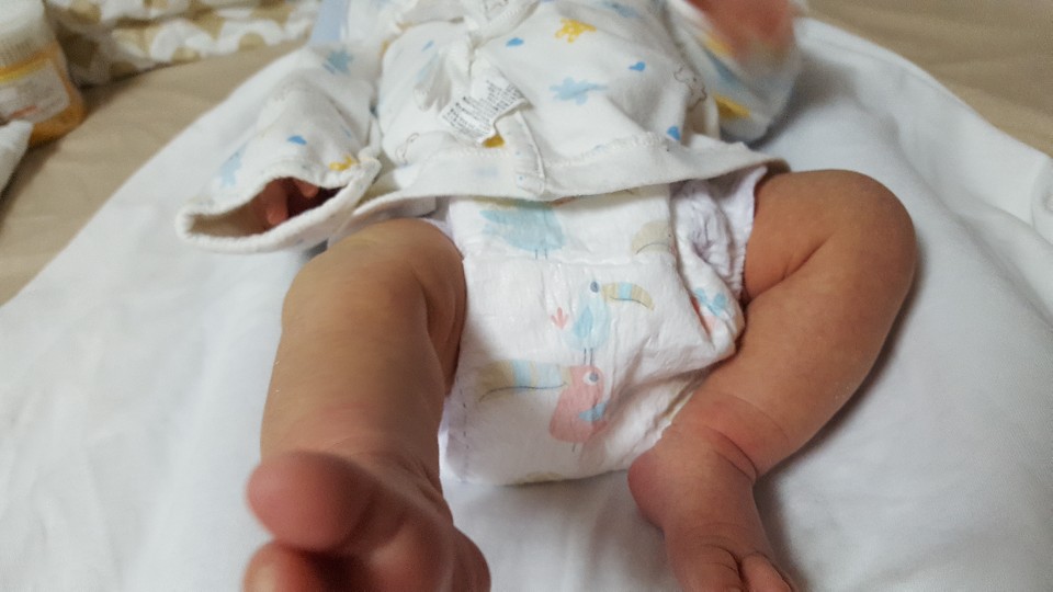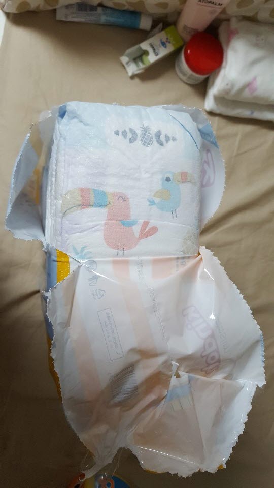 기저귀를 보니 귀여운 새가 프린트 되어 있네요 ~