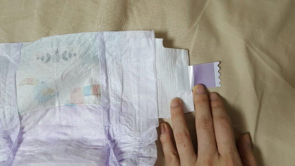 국내 기저귀에는 저런 식의 밴드부분이 없더라구요. 기저귀를 뒷처리할때도 쭉 늘려서 공처럼 작게 만드는